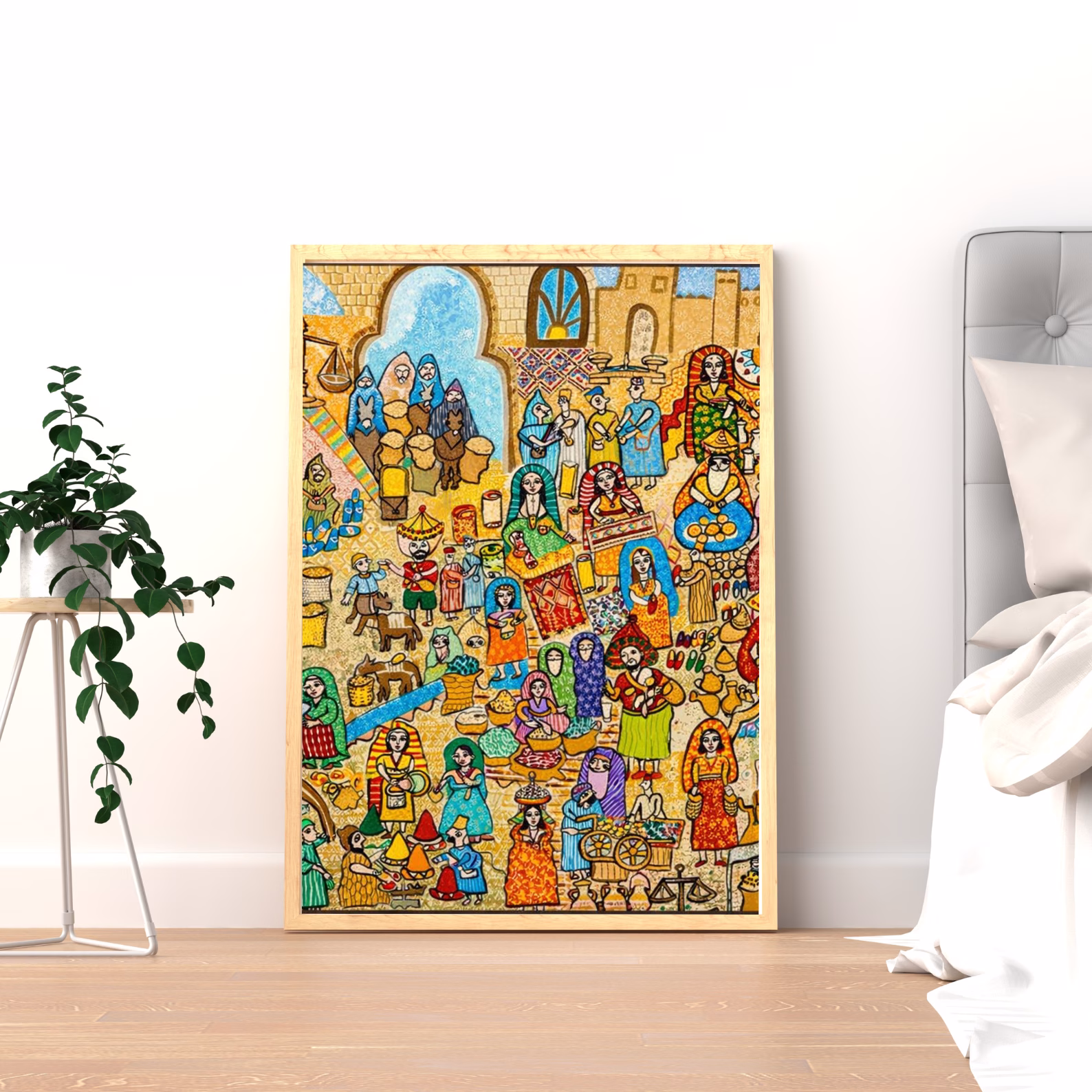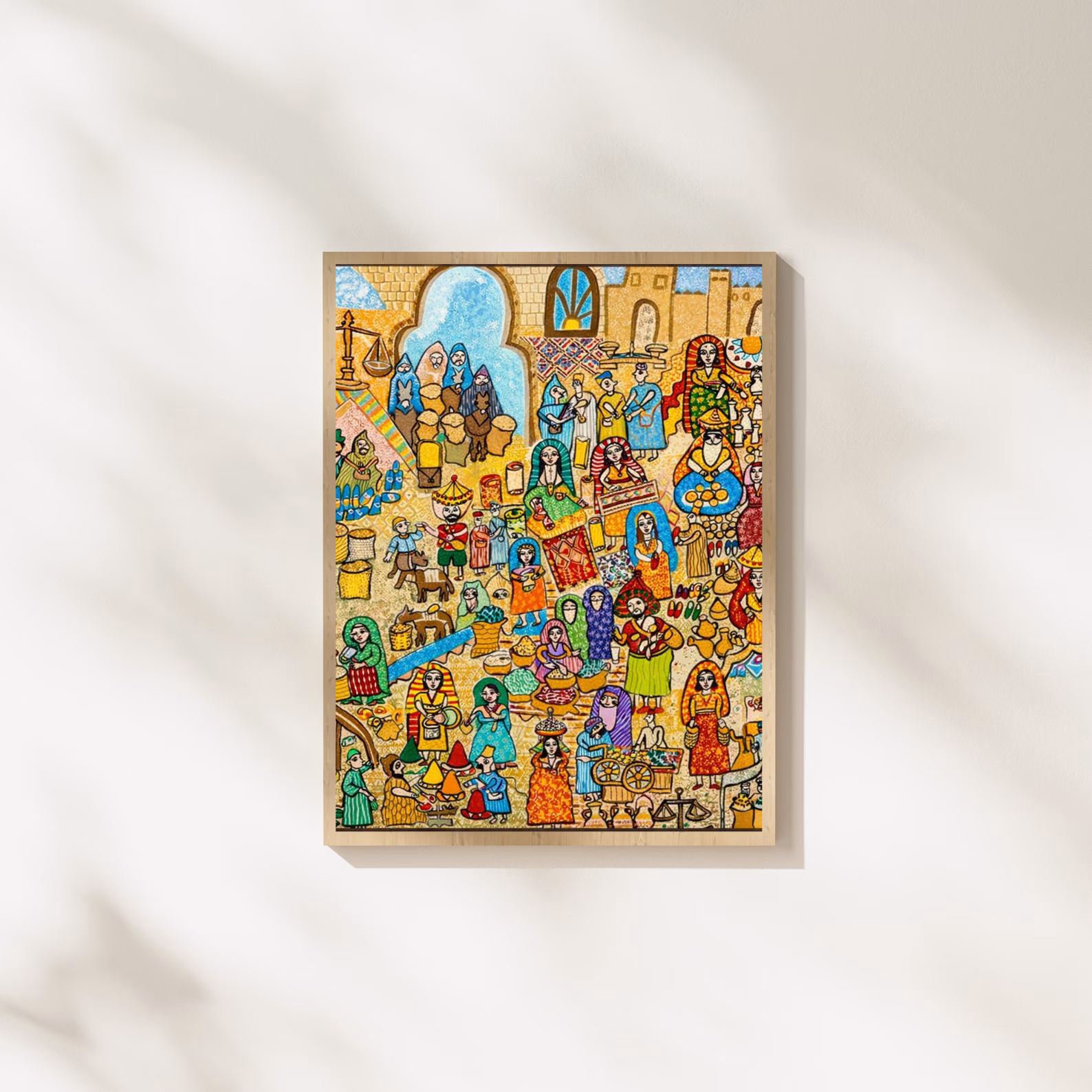 Ce tableau décoratif marocain illustre une scène vivante de la médina marocaine, mettant en valeur les marchés, les habitants et l’architecture authentique du Maroc. Riche en couleurs et en détails, il apporte une touche chaleureuse et culturelle à votre intérieur. Idéal pour le salon, le bureau ou un espace professionnel, ce tableau célèbre l’identité marocaine et le patrimoine artisanal.
